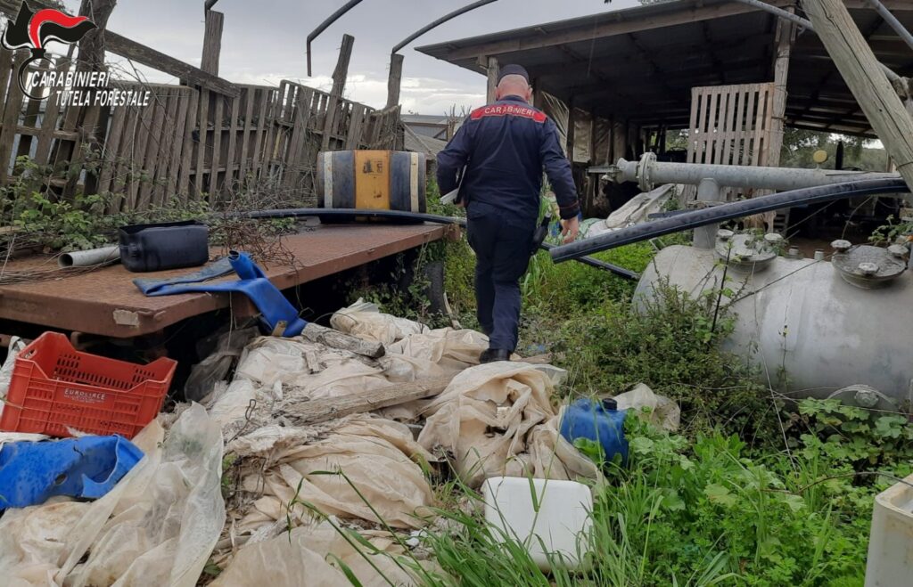 In particolare i militari hanno riscontrato che nell’area erano presenti rifiuti rientranti nelle categorie di ‘pericolosi’ e ‘non pericolosi’, costituiti tra l’altro da imballaggi di plastica, pneumatici, materiale plastico, fusti vuoti di olio motore non bonificati, contenitori vuoti di fitofarmaci non bonificati, resti meccanici, contenitore vuoto di pesticida agricolo non bonificato e materiale vario di risulta in evidente stato di abbandono.