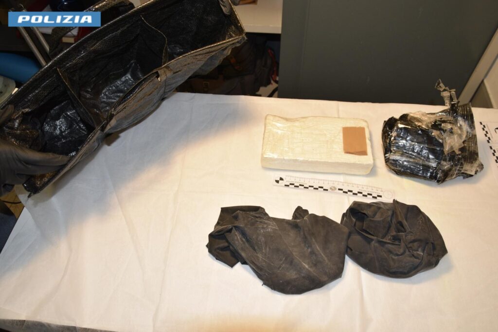 Grazie al tempestivo intervento di una seconda pattuglia di supporto, gli agenti hanno proceduto alla perquisizione del mezzo e delle persone. All’interno della busta è stato rinvenuto un panetto, accuratamente confezionato, contenente una sostanza solida biancastra che, a seguito di narco-test eseguito presso il Gabinetto Provinciale di Polizia Scientifica di Latina, è risultata essere cocaina per un peso complessivo di oltre un chilogrammo.