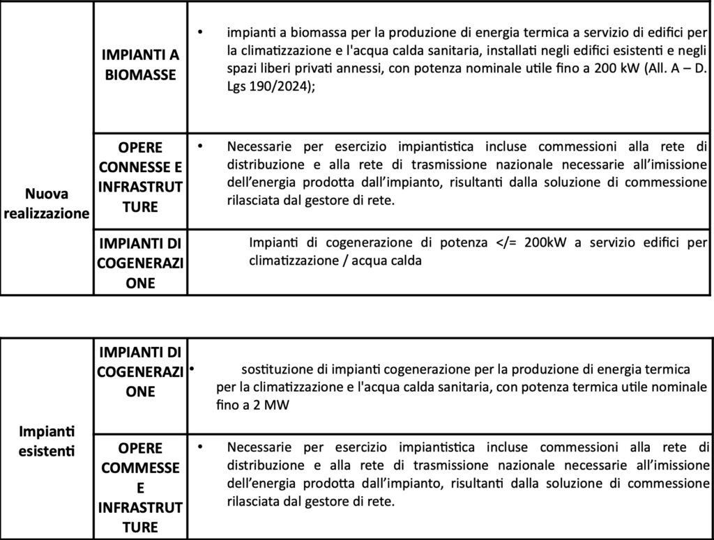 Nella tabella seguente si riportano gli specifici interventi realizzabili previa comunicazione relativa alle attività in edilizia libera, in base alle principali fonti di energia: