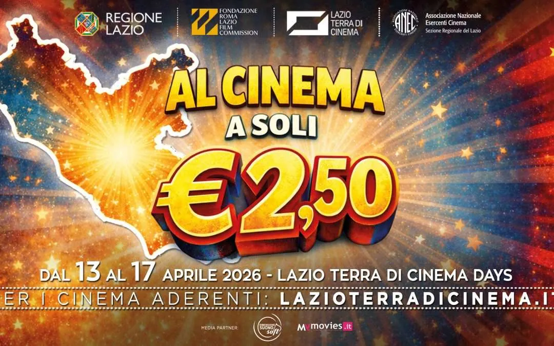 CONTINUA A LEGGEREDal 13 al 17 aprile 2026 Lazio Terra di Cinema Days, l’iniziativa che permette di andare al cinema in tutto il Lazio con