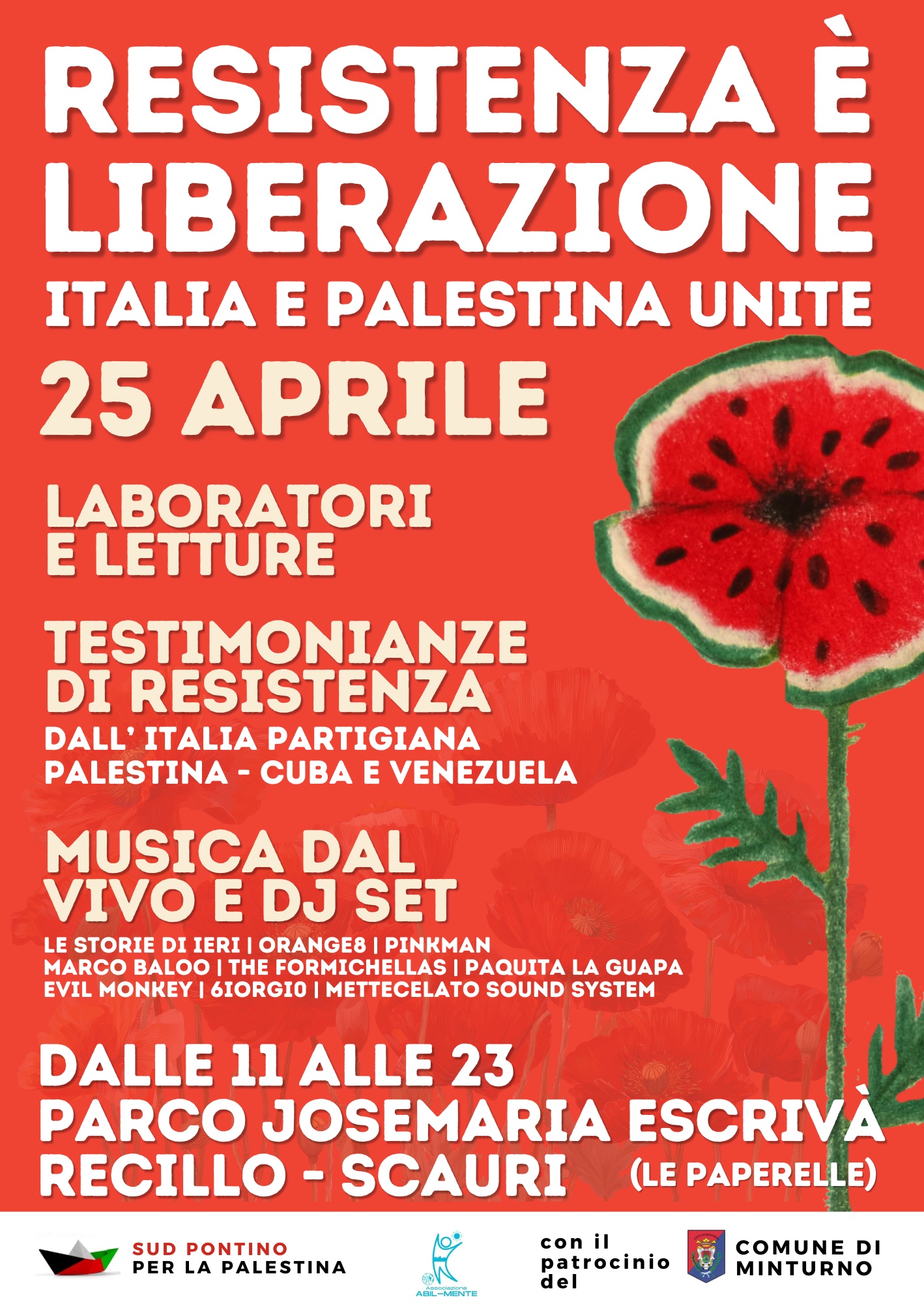 Sabato 25 Aprile al parco Recillo di Scauri ci sarà una giornata di festa, memoria e solidarietà internazionale aperta a tutta la