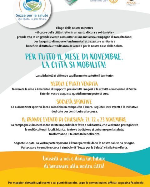 A Sezze prende avvio la campagna “SEZZE PER LA SALUTE: ogni offerta è un gesto che cura”, iniziativa pensata per dotare la Casa della